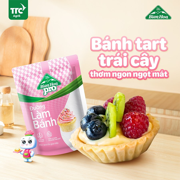 • Đường làm bánh Biên Hòa Pro Baking là loại đường bột tinh luyện trắng siêu mịn, được bổ sung 3% bột bắp